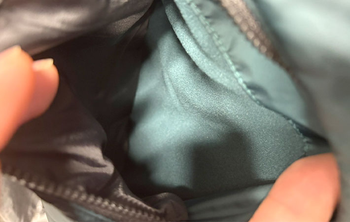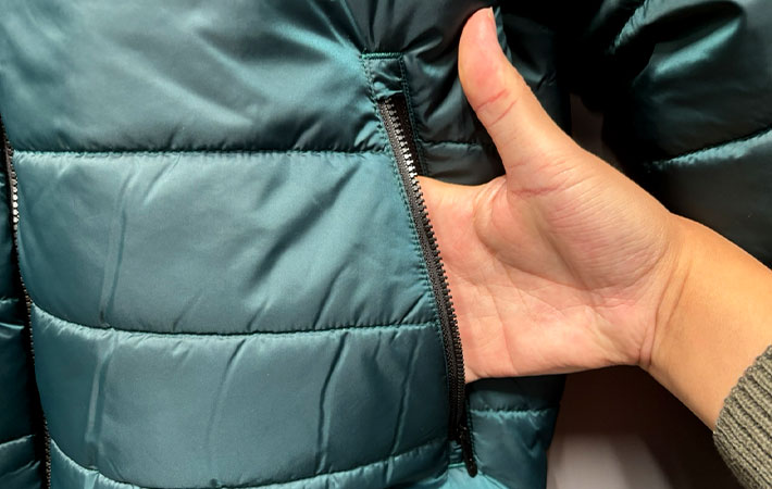 前身頃についているファスナーポケットも、手の大きな筆者が入れてもすっぽり収まるほどの大きさとなっています。