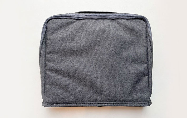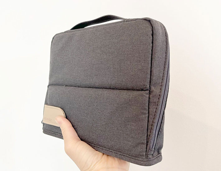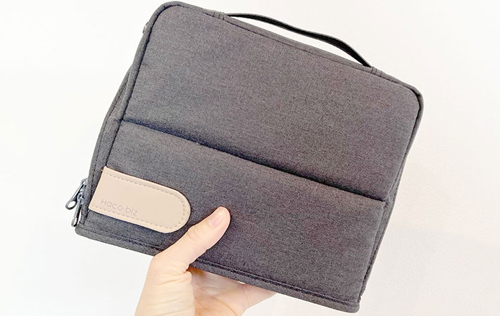 ちょうど仕事で外出予定があったため、バッグに入れてみたところ、こんなに省スペースで収まりました。