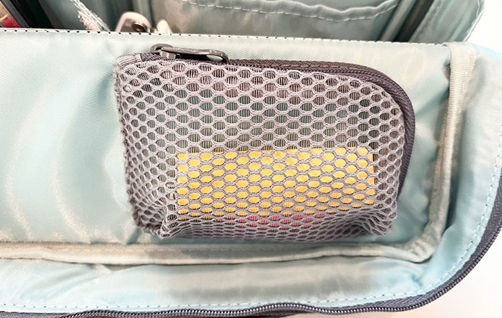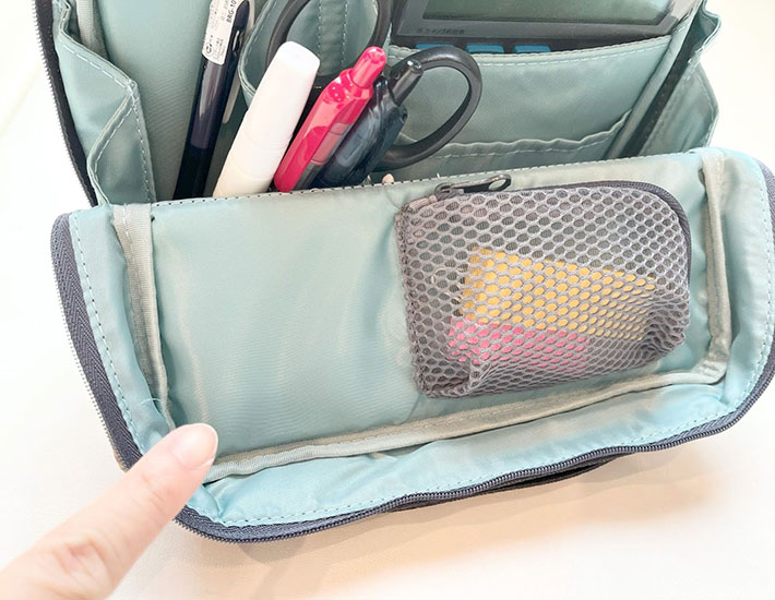 手前のメッシュポケットには、パラパラと散らかりがちな付箋やクリップをイン。