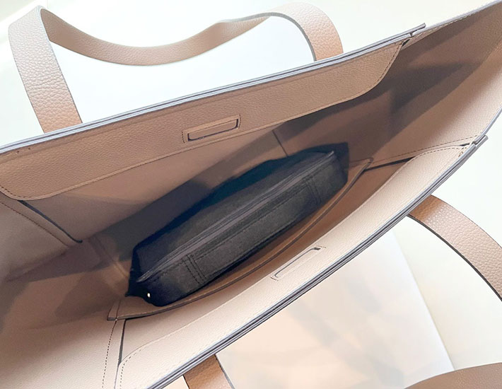 上記のアイテムを全部入れた状態でファスナーを閉めても、こんなにスッキリ。