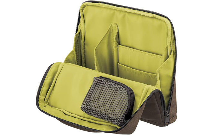 一見ただのポーチのように見えますが、さまざまな文具やワークツールを立たせて収納できる超便利アイテム。