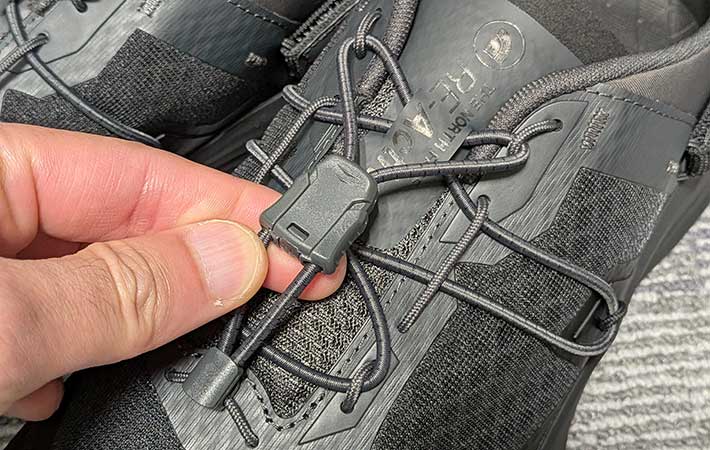 靴ひももゴムになっており、フィット感も簡単に調節できるようになっています。