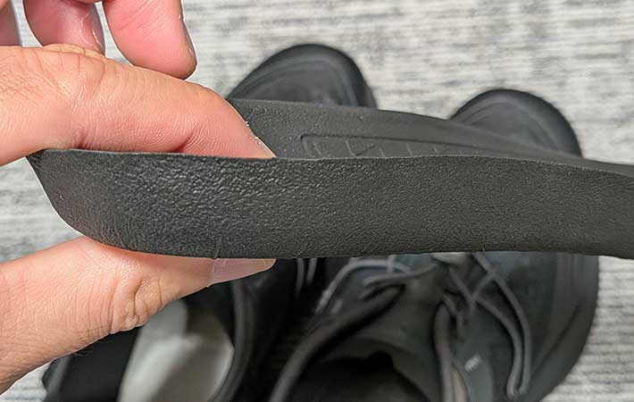 この履き心地のよさは、厚みが2.5cmもあるインソールによるものでしょう。