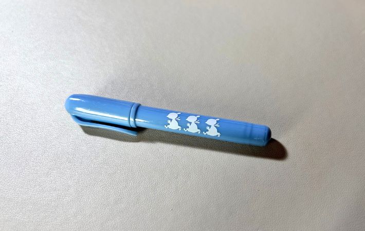 ボールペンのサイズは全長8.5cm。『リトルミイ』のシルエットのイラストがさりげなく描かれているのがポイントです。