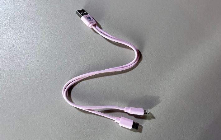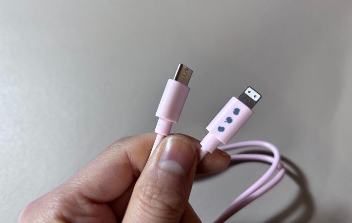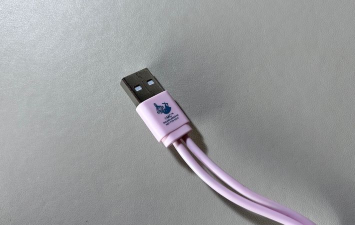 お出かけや旅行の必須アイテムである、充電用USBケーブルもピンク色でかなりかわいいデザインに仕上げられています。