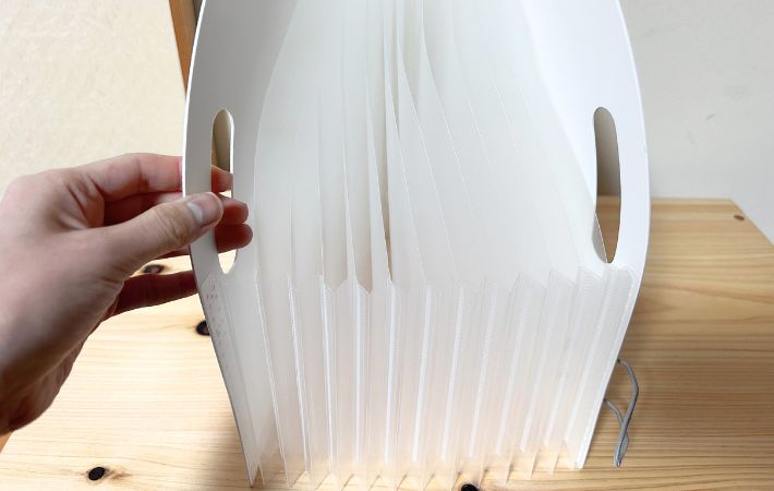 ジャバラ式だからパッと広がり、仕分けがスムーズ。