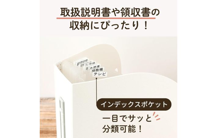 必要な書類をカテゴリーごとにすっきり整理できるのが、この製品の大きな魅力です。