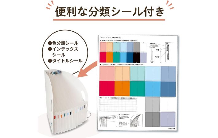 付属のカラーシールを貼れば、色分けによる分類も可能です。