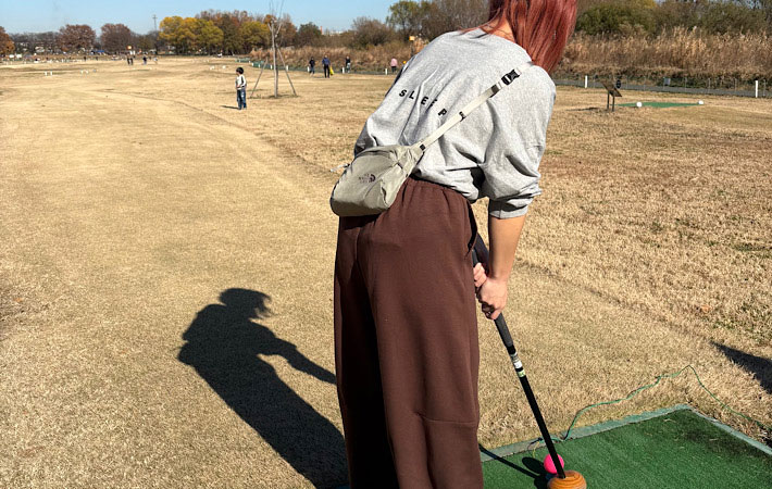 家族でパターゴルフをした時も、バッグを掛けたままプレーできました。いちいちバッグを地面に置く必要がなくなって、ストレスフリーです!