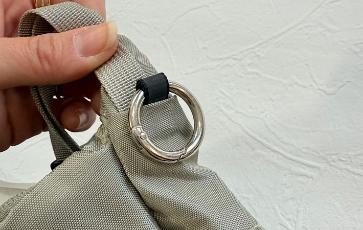 バッグの片側にはループがあり、カラビナやキーリングを取りつけることができますよ。