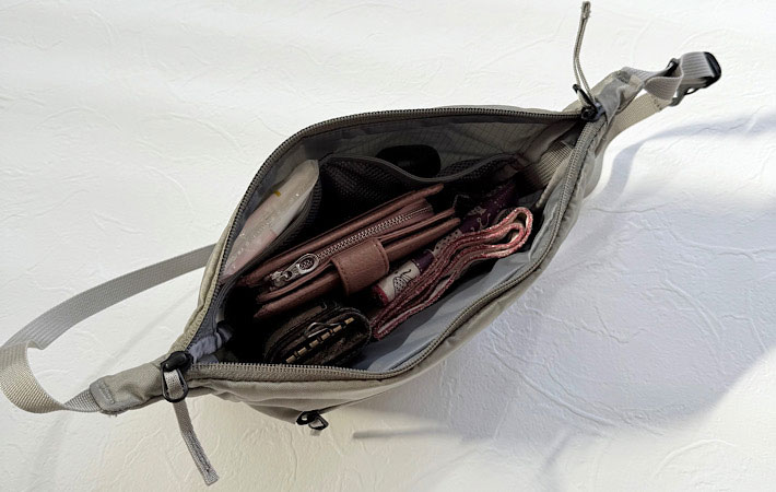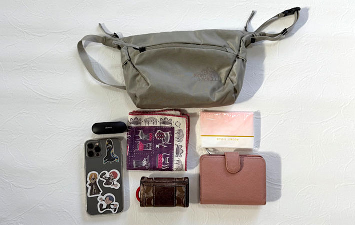 スマホや財布など、必要最小限の荷物だけ入れたミニショルダーを斜め掛けにして外出することが多い筆者。