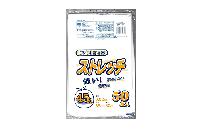 [日本技研工業] ストレッチ ゴミ袋 (強くて伸びやすく裂けにくい・厚さ0.02mm) ST-45N 半透明 45L 50枚入り