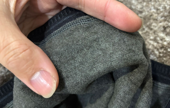 保温性を考えたらもう少し厚みがあってもいいかもしれませんが、全体的には満足できるレベルで、防寒アンダーウェアとしては十分でしょう。