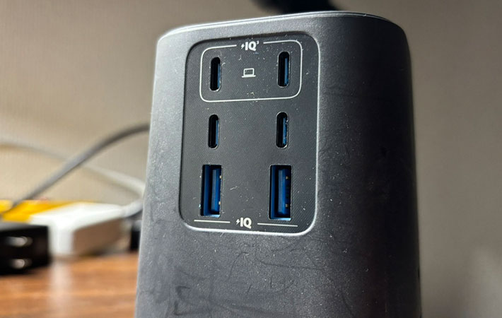 USB-C差込口のうち、上部2口は100W出力に対応しています。