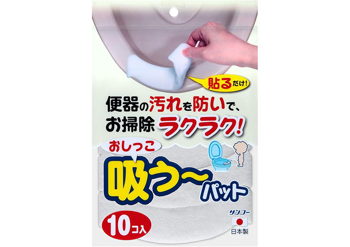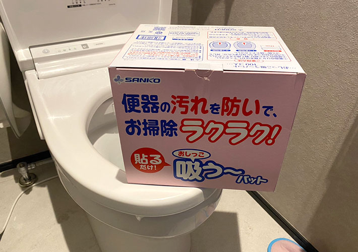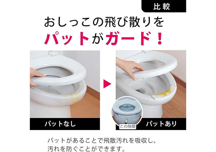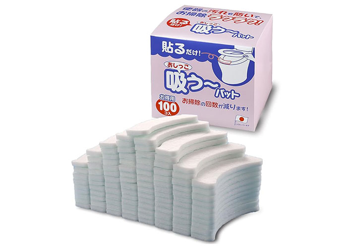 便器の裏にペタッと貼ると、前方からのおしっこを吸い取ってくれるという嬉しいアイテム。
