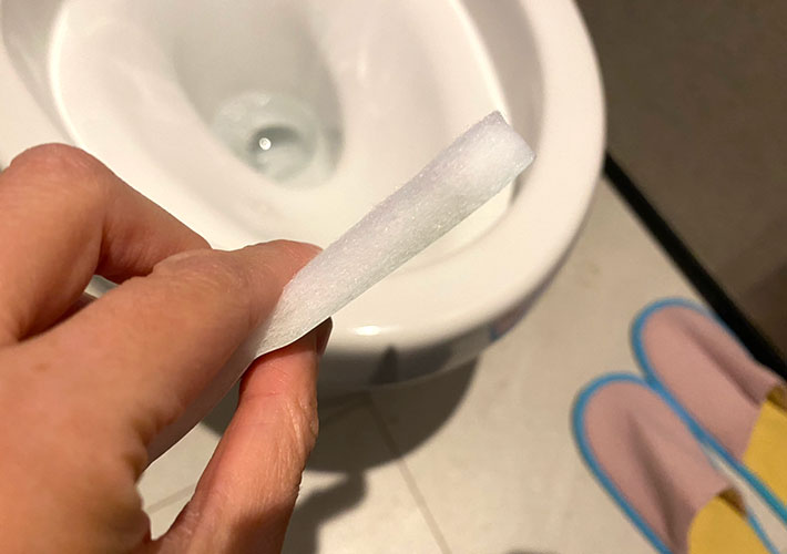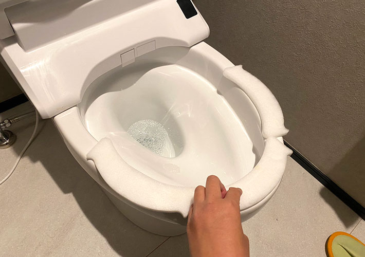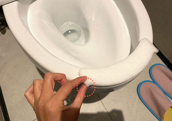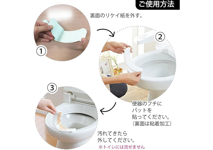 裏面のリケイ紙を外して、便器のフチにパットをぺたり。