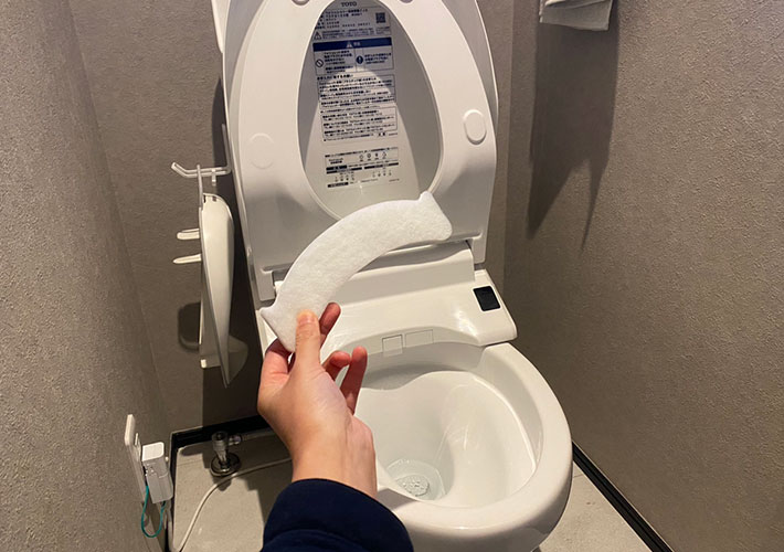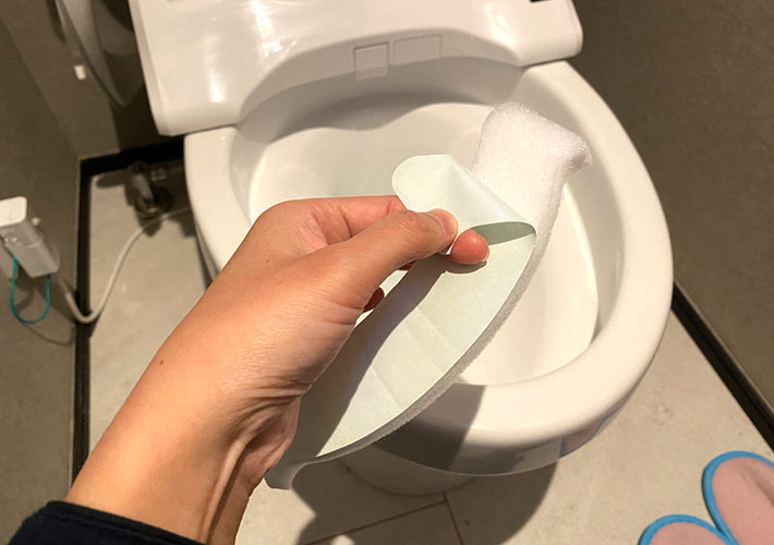 汚れたあとは取り外して、新しいものと交換すればOK。トイレに流すことはできませんので注意してくださいね。