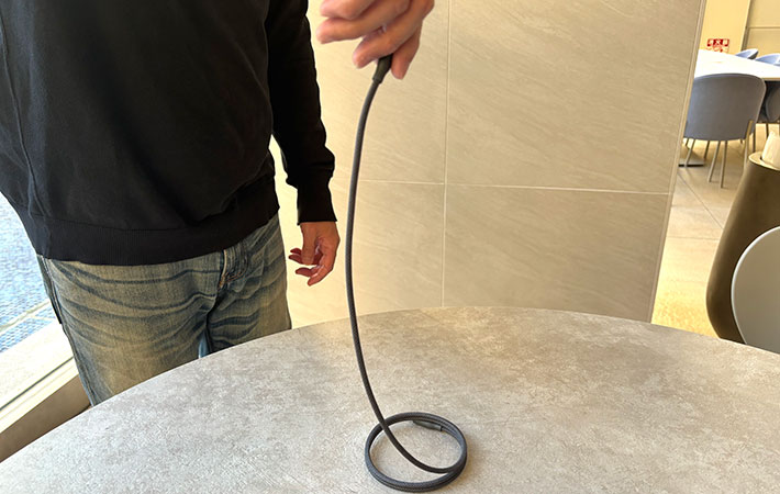 スパイラル構造なので、使用時には必要なぶんだけ長さを伸ばして使えます。