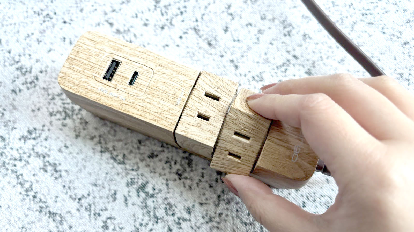 回転式のおかげで、大きなACアダプタを挿しても干渉しにくく、「ACアダプタが大きくて隣が使えない…」というストレスがなくなりました。