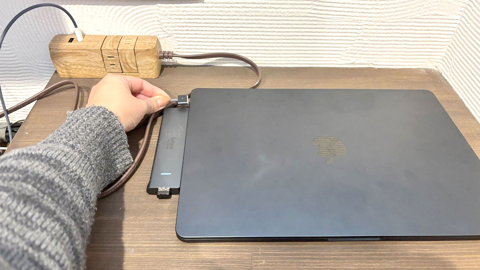 USB-CはPD30W対応なので、MacBook Air のような軽量ノートPCも充電できます。