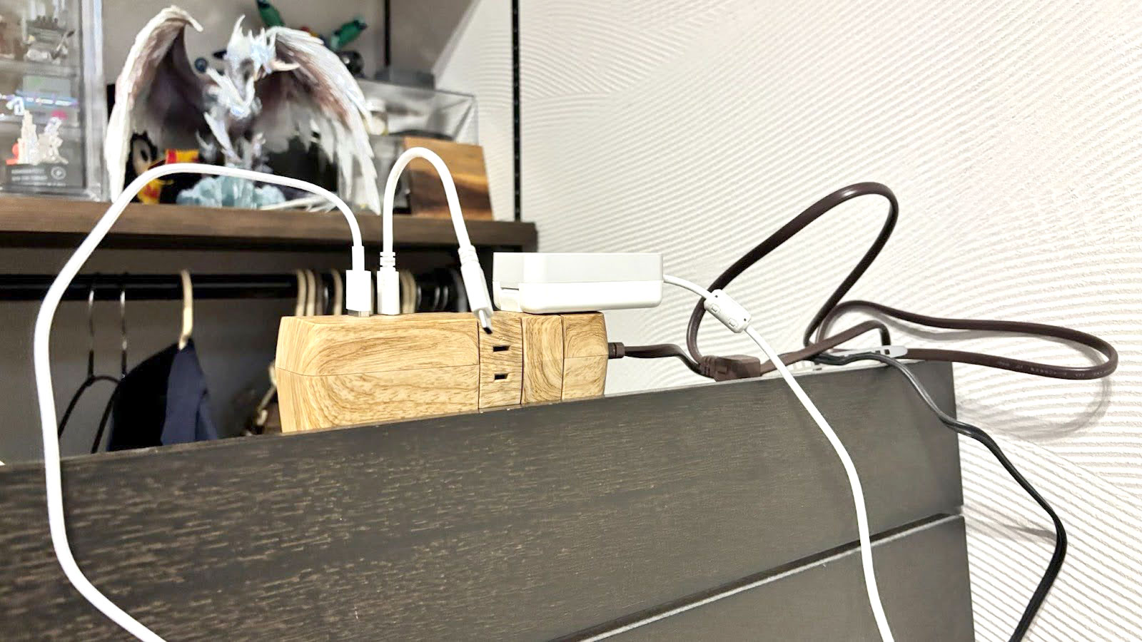 全部屋に置きたくなる! インテリア雑貨みたいな木目調電源タップ、使い勝手は? ガジェット By - 小林ユリ 更新:2025-12-21 ※本記事はUPDATEが独自に制作したコンテンツです。また、本記事を経由して商品の購入が発生した場合に、ECサイト等から送客手数料を受領することがあります。 電源タップと言えば、無機質なものが多く「できれば目につかない場所に隠しておきたい存在」というイメージ。 しかし、そんな先入観をガラッと変えてくれる木目調の電源タップを見つけました。それが、『Fargo(ファーゴ)』の『TAPKING USB T4』。 ナチュラルで温かみがあり、デスクやリビングに置いておきたくなるデザインです。 とは言え、電源タップに求めたいのは見た目だけでなく、やはり使いやすさと安全性。 『TAPKING USB T4』は、デザイン性・機能性・安心感をバランスよく備えた1台です。 実際に使ってみて感じた魅力を詳しく紹介します。 木目調デザインが空間に溶け込む Amazonで見る 楽天市場で見る 『TAPKING USB T4』の木目調カラーは生活感が出にくく、ナチュラル・北欧風・カフェ風など、さまざまなテイストのインテリアと相性抜群。 隠すのではなく、見せても気にならない電源タップというのは、結構貴重な存在だと感じました。 コードの色は、本体の木目調とマッチしたこげ茶色。細部にまでこだわりが感じられます。 壁にも取りつけOK 本体の裏にはフック穴がついているので、壁に取りつけることができます。 電源タップが床に転がっているとどうしても生活感が出がちですが、壁掛けにすることでスッキリした印象に。 欲しかった場所にコンセントを気軽に増設できるのも、嬉しいポイントです。 差込口が回る!ストレスゼロの「回転式AC差込口」 『TAPKING USB T4』の大きな特徴が、独立して180°回転するAC差込口。 回転式のおかげで、大きなACアダプタを挿しても干渉しにくく、「ACアダプタが大きくて隣が使えない…」というストレスがなくなりました。 さらに、差込口は両差し対応。 AC差込口が上向きの状態では2口、横向きにすると最大4口使用できます。 使い方に合わせて柔軟に対応できるのが魅力です。 差込口の回転はとてもスムーズ。 日本人の指のサイズや手首の可動域、回転時の力を考慮して設計されているそうで、実際に使ってみると「なんか気持ちいい」と感じる操作性です。 高い熱吸収構造で安心して使える 安全性への配慮もしっかりしているのが『TAPKING USB T4』の頼もしいところ。 内部には一般的な電源タップの約3倍量の銅が使用されているのだそう。 熱伝導性の高い銅をたくさん使用することで、熱をすばやく吸収し、内部温度の上昇を抑える構造になっています。 電源タップの発熱は最悪の場合トラッキング火災につながることも。 毎日使うものだからこそ、この安心感は大きなポイントです。 USBポートも搭載!Type-C はPD30W対応 『TAPKING USB T4』は、AC差込口だけでなく、USB-AとUSB-CのUSBポートも搭載。 USB-CはPD30W対応なので、MacBook Air のような軽量ノートPCも充電できます。 接続された機器の入力電流を自動で検知し、最適な電流で充電してくれるため、スピーディーな充電が可能です。 スマートな配線を叶えるL字プラグ 壁コンセントに挿すプラグは L字タイプ。 コードが壁から飛び出さないため、家具の裏やデスク横、ベッドサイドなどの狭い場所でも配線がスムーズです。 実際に使って感じた活躍シーンは 実際に数週間使ってみて、特に便利だと感じたシーンをまとめました。 デスクまわり PC・スマホ・ライト・モニターなど機器が多いデスク環境で大活躍! ACアダプタ同士がぶつからず、配線が快適になりました。 ベッドサイド 夜寝る時に充電するものが多い人には理想的。 本体に厚みがあり自立してくれるので、わずかなスペースでも安定して置ける点も好印象でした。 リビング 床置きしても生活感が出にくいデザイン。 加湿器などの季節家電を増やしても、最大4つのAC差し込み口があるので余裕を持って対応できます。 毎日使うからこそこだわりたい!Fargo『TAPKING USB T4』まとめ 『TAPKING USB T4』はこんな人にぴったりの電源タップです。 ・見せ置きできるおしゃれな電源タップが欲しい ・ACアダプタが多く、差込口の干渉に悩んでいる ・USB-Cでスマートに急速充電したい ・安全性重視のモデルを選びたい 地味な存在に見えがちな電源タップですが、毎日使うものだからこそ、見た目・使いやすさ・安心感にこだわって選びたいもの。 Fargo『TAPKING USB T4』は、見せられるデザインと妥協しない安全設計を両立した、長く使いたくなる1台でした。 「生活感をできる限り抑えて、心地いい空間を作りたい」という人に、心からおすすめできる電源タップです。 気になった人は、ぜひチェックしてみてくださいね。 AmazonでFargo『TAPKING USB T4』を見る 楽天市場でFargo『TAPKING USB T4』を見る [文・構成/UPDATE編集部] 出典 Amazon/楽天市場 関連ワード 検証電源タップ この記事をシェアする Share Post LINE