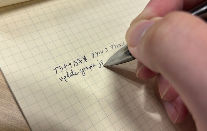 ・勉強に使うというよりも、サラサラッと書く時に使うほうが向いている。この価格帯では抜群の高級感。