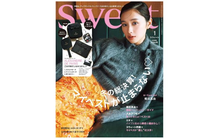 宝島社から発売されている『sweet 2026年1月号』の付録は、人気アクセサリーブランド『ALEXANDRE DE PARIS(アレクサンドル ドゥ パリ)』とのコラボアイテム『乙女の身だしなみ3点セット』です。