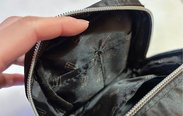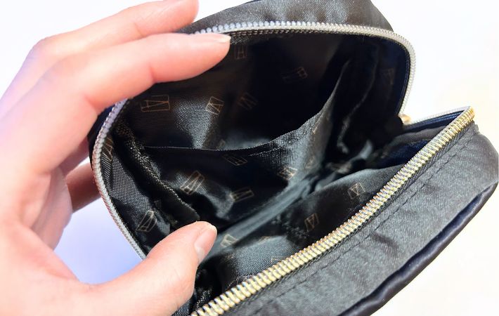 中にアクセスすると、メインコンパートメントのほかに3か所の内ポケットが確認できます。