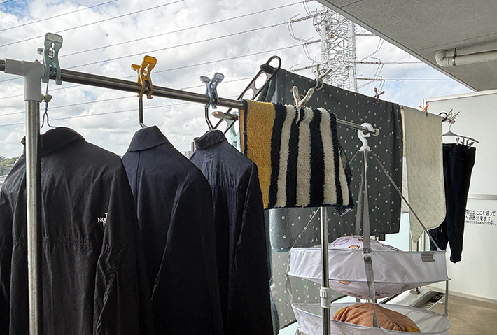 物干し竿は、布団カバーとシーツが独占してしまい、気がつくと…。