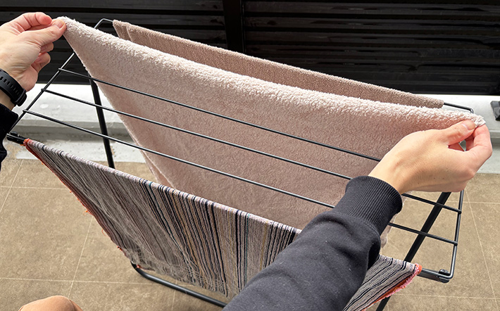 ハンガーの跡を残したくないお気に入りのスウェットや、枕、クッションなどを干すのに使うといいでしょう!