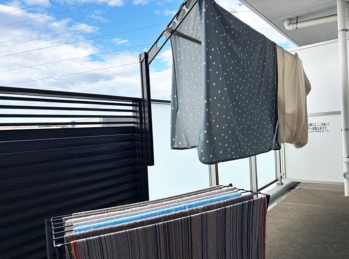 また、ベランダにもバスタオルが触れることなく、清潔さを保てるのはいいですね。