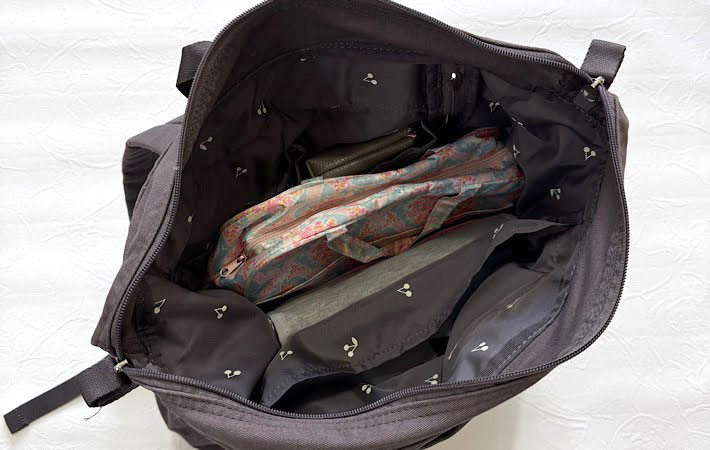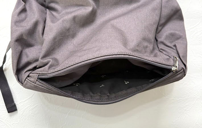 まず驚いたのが、メインコンパートメントの容量。ガバッと大きく開くので、中身もとても見やすいです。