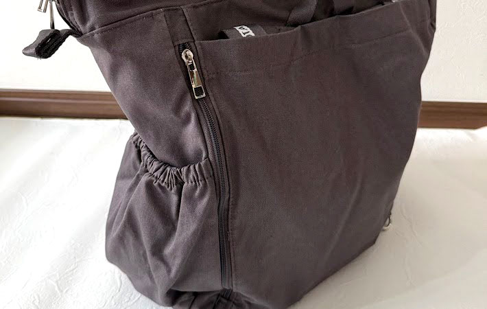 外ポケットも両側についているので、サッと取り出したい子供の水筒やペットボトルの収納にぴったり。