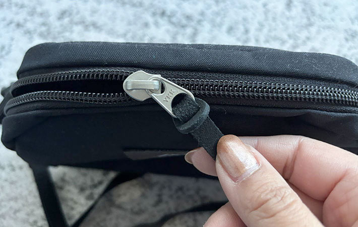 ファスナーは丈夫なYKK製で、開閉もスムーズです。