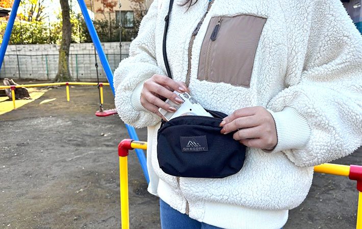 また、コンデジを持って街歩きをするのが好きな筆者は、カメラ用バッグとして使うこともあります。