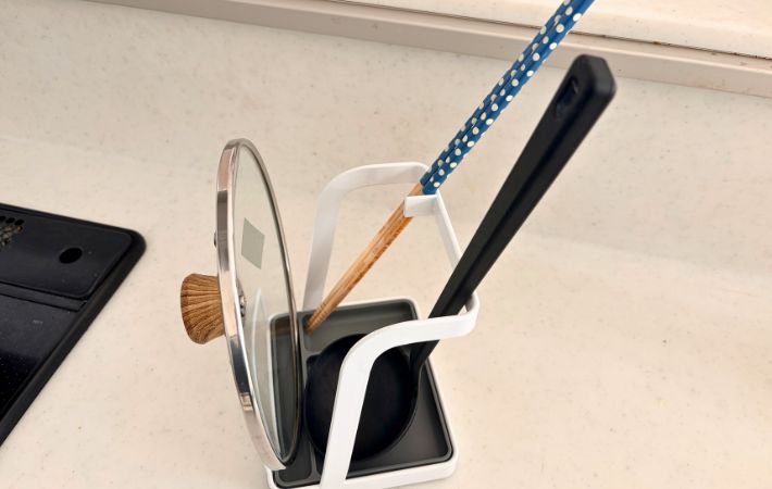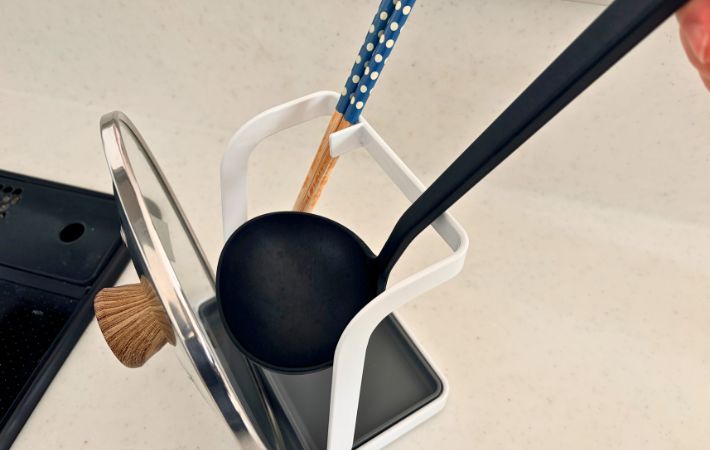 鍋蓋や菜箸をついキッチンのその辺に置いてしまっている…という人は、ぜひ『お玉&鍋ふたスタンドL』を取り入れてみてはいかがでしょうか。