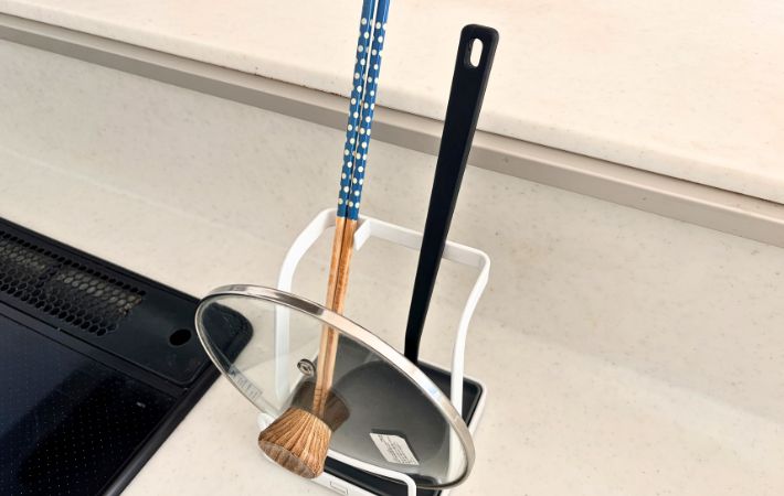 料理中の鍋蓋や調理ツールの置き場所に、ずっと困っていた筆者。