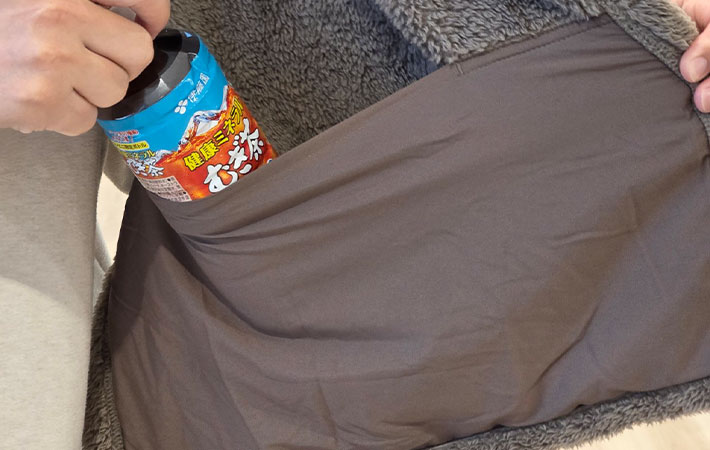 例えば、ポケットにあたたかい飲み物を入れておくと、生地全体にあたたかさが伝わって、身体をあたためることもできるでしょう。