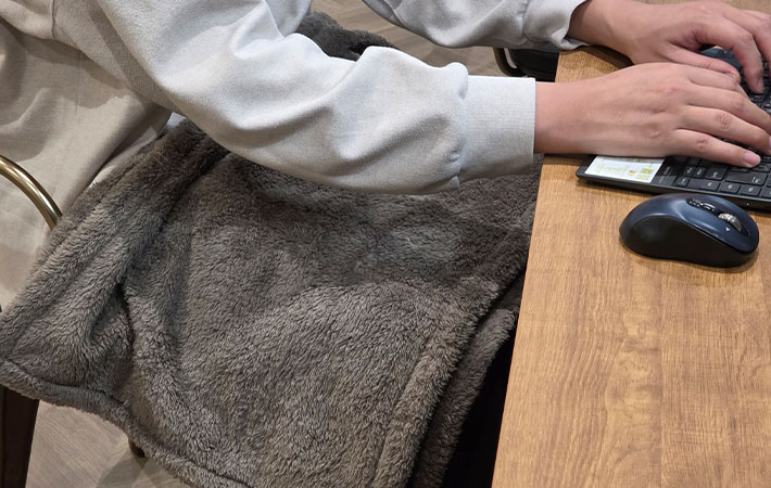 あたたかいお茶を飲むとより効果的で、少し暑く感じられるほど。これ1枚あれば、オフィスにいる間に身体が冷える心配は要らないでしょう。