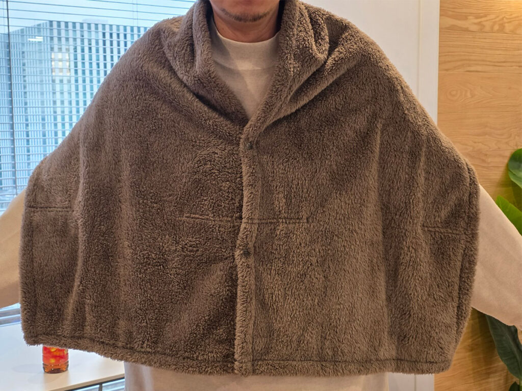 パッと羽織ったらボタンで留める。180cm台の筆者でもすっぽり収まった、無印の『着るブランケット』に注目 新着 By - akira 更新:2025-12-23 ※本記事はUPDATEが独自に制作したコンテンツです。また、本記事を経由して商品の購入が発生した場合に、ECサイト等から送客手数料を受領することがあります。 冬場は何かと暖を取りたくなるもの。 部屋の暖房がついていても物足りない時は、ブランケットや羽織り物などに頼るでしょう。 せっかくなら、そのブランケットと羽織り物を1つにまとめてみませんか。 本記事で紹介するのは、人気ライフスタイルブランド『無印良品』が販売している『再生ポリエステルあったかボア ケープ』です。 Amazonで見る 楽天市場で見る 『再生ポリエステルあったかボア ケープ』はモコモコとした感触のボア素材で、肩から羽織る襟なしのアウターとなっています。 ただ羽織るだけの一枚物でなく、ボタンで留めてしっかりと『着る』ことができる点が特徴です。 肩周りを覆いつつ、腕もちゃんと動かせるようにデザインされているので、日常生活の動作は難なくこなせるでしょう。 『再生ポリエステルあったかボア ケープ』はユニセックスでワンサイズですが、身長180cm台後半の筆者でも問題なく着用できました。 しばらく着用してみましたが、ボア素材ということもあって、身体が徐々にポカポカするのが心地よかったです。 あたたかいお茶を飲むとより効果的で、少し暑く感じられるほど。これ1枚あれば、オフィスにいる間に身体が冷える心配は要らないでしょう。 なお『再生ポリエステルあったかボア ケープ』は洗濯することができます。乾燥機はNGですが、普通の服と同じようにケアできるのは楽ですね。 ちなみに、裏面にはポケットがついています。ポケット自体はスマホや財布、あるいは600mL以上のペットボトルすらもすっぽりと入る、かなり大きいサイズです。 裏面と言えば、ポケット部分以外は表面と同じボア素材。片面だけボア素材のものよりも、あたたかさが伝わりやすくなっています。 例えば、ポケットにあたたかい飲み物を入れておくと、生地全体にあたたかさが伝わって、身体をあたためることもできるでしょう。 ちなみに『再生ポリエステルあったかボア ケープ』は、小さくたためばブランケットとして使用することもできますよ。 幅広い使い方と、使い勝手のよさが光る『再生ポリエステルあったかボア ケープ』。 肌寒さを感じた時にパッと羽織れる、無印良品の『再生ポリエステルあったかボア ケープ』は、冬の日常生活を快適にしてくれますよ。 2025年12月中旬現在、価格は4,000円弱とお手頃なので、この機会に1つ手に入れてみてはいかがでしょうか。 Amazonで見る 楽天市場で見る [文・構成/UPDATE編集部] 出典 Amazon/楽天市場 関連ワード 検証無印良品防寒対策 この記事をシェアする Share Post LINE