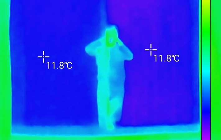 というわけで、そのままの状態の窓をサーモカメラで撮影。両窓とも11.8℃と同じ温度でした。