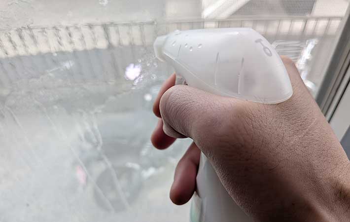 下準備として、窓をきれいに拭く、窓のサイズに合わせて断熱シートを切る、霧吹きなどで窓ガラスしっかり濡らす必要があります。