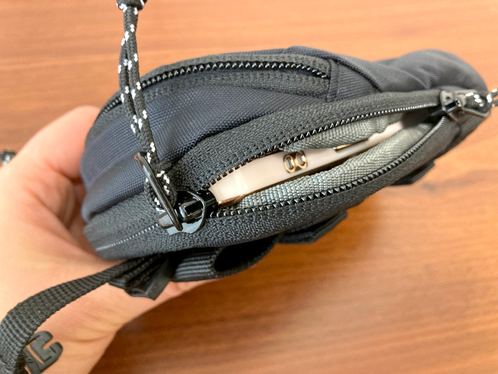 筆者はこのポーチにスマホや交通系IDカードを入れて使っています。
