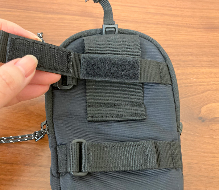 リュックにさっと外つけして、スマホやカード入れなどの小物収納スペースにできる優れものアイテムなのです。