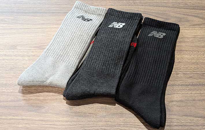 筆者がおすすめするソックスは、シューズメーカーとして人気の高い『ニューバランス』の『レギュラーレングス3Pソックス』。