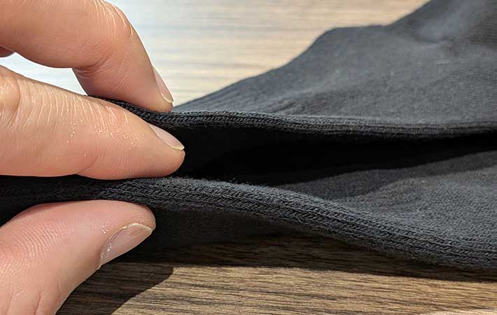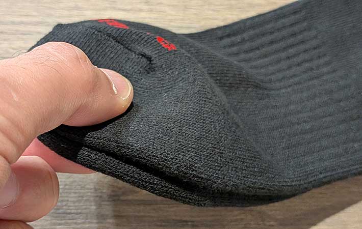 『レギュラーレングス3Pソックス』の特徴の1つとして、生地の厚みがあります。
