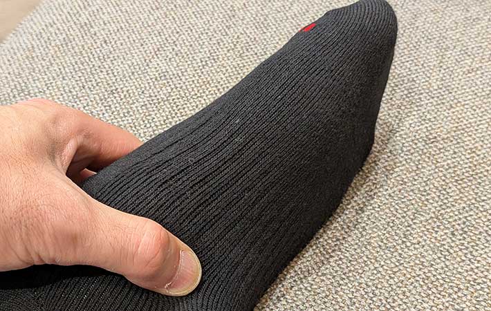つま先やかかとに厚みを持たせているので、履き心地はやわらかく、指先などの保温性も高く感じました。