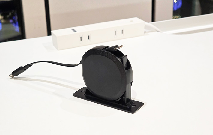 充電の定位置が決まる巻き取り式ケーブル!