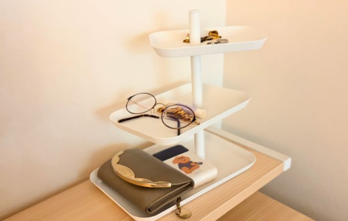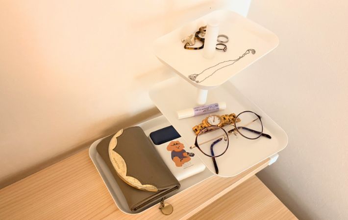 「どこ置いたっけ?」がなくなった! 毎日使うものほど散らかる問題を『tower』で解決 生活雑貨 By - endang 更新:2025-12-26 ※本記事はUPDATEが独自に制作したコンテンツです。また、本記事を経由して商品の購入が発生した場合に、ECサイト等から送客手数料を受領することがあります。 毎日使うアクセサリーや腕時計。 洗面台に置いたり、キッチンカウンターに置いたり、メガネも「あとで使うから」とケースにしまわずに、その辺に置きっぱなしにするなんてこともよくありますよね。 筆者も外す場所が毎回バラバラなので、次に使う時は決まって「どこに置いたっけ?」と探す流れが定番。財布やモバイルバッテリーも同様に、気づけば迷子になっていました。 そんな筆者が取り入れたのが、『山崎実業』の『tower(タワー)』シリーズ『アクセサリー3段トレー』です。 毎日使う細かい小物の定位置が決まり、自然とひとまとめにできるようになりました。 実際に使ってみた感想や気になる点も正直にレビューしていきます。 出しっぱなしが前提の片づけトレー 「これめっちゃ便利かも!」 Amazonで見る 楽天市場で見る サイズ:幅24.7cm×高さ25.7cm×奥行き15.7cm 重量:920g 耐荷重:1段あたり1kg スチール製のトレーを3段重ねた構造のアクセサリートレーです。 蓋のないオープンタイプなので、出し入れに手間がかからないのが特徴的。 それぞれのトレーは独立していて、大・中・小のサイズ違いになっているため、アクセサリーの種類や用途に分けて収納できます。 また、トレーは左右に回転させて自由に向きを変えられるので、自分の利き手や設置場所に合わせて、取り出しやすい向きに調整できるのも魅力です。 見た目はとてもシンプルで、『tower』シリーズらしい無駄のないデザイン。マットなホワイトとスチール素材の組み合わせで、主張しすぎないのに安っぽさはありません。 表面は少しざらっとした質感で、アクセサリーや腕時計を置いても滑りにくく、使っていて安心感があります。 出しっぱなしでも生活感が出にくく、小物を適当に置いても「ちゃんと整っている感じ」に見えるのは、この質感のおかげだと感じました。 『アクセサリー3段トレー』を実際に使ってみた感想 実際に数日間使ってみて、少しずつ定位置が決まってきました。 最初からきっちり決めたわけではなく、「ここに置くと取りやすいな」と使いながら自然に落ち着いた配置です。 上段の小サイズのトレーには、指輪やネックレス、イヤリングなどのアクセサリー。中段の中サイズには、メガネや腕時計、リップクリームを置いています。 そして下段の大サイズには、財布とモバイルバッテリーをまとめて収納しています。 デスクに置いておくことで、使いたい時にサッと手に取れて、外出から帰ってきた時も腕時計やアクセサリーを外してそのまま置くだけ。しまう場所を考える必要がなくなりました。 使い続けるうちに、無理なく定位置が決まっていき、片付けることを意識しなくても、自然と定位置に戻せます。この使い心地が、ズボラな筆者にはとても合っていました。 使ってみたからこそ感じたメリット 置くだけでおしゃれに見える3段構造 サイズが異なる3段構造のおかげで、大きさや頻度に合わせて自然に使い分けができます。 置くだけでおしゃれなディスプレイのように整うのも好印象でした。 ずっしりしていて安定感がある 見た目以上にしっかり重さがあり、トレーを回したり、腕時計を置いたりしてもグラつきません。 スチール製で表面が少しざらっとしているので、置いたものが滑りにくいのも安心感につながっています。 さらに、裏面には丸い滑り止めがついていて、デスクや棚に置いた時にガチャガチャ音がしないのもポイント。 これらは使ってみて初めて「いいな」と感じたポイントでした。 ちょっと気になった点も正直に 全体的にとても気に入っているのですが、使ってみて少し気になった点もありました。 1つ目は、トレーがスチール製なこと。指輪や腕時計を置くと、「カチャッ」と金属同士が当たる音がします。 音が気になる人は、薄いシートやお気に入りの布を敷くと、より快適に使えそうです。 もう1つは、組み立てについて。 組み立て自体はとても簡単なのですが、トレーを左右に動かしながら使っていると、ネジが少しずつ緩んでくることがありました。 その場合は、気づいたタイミングで締め直す必要があります。 「置き場所が決まる」だけで迷わない・失くさない Amazonで見る 楽天市場で見る 『山崎実業』の『アクセサリー3段トレー』を使い始めてからは、外したらここ、という動線が自然にできました。 蓋を開ける必要もなく、考えなくても置ける…出しっぱなしでも生活感が出にくく、きちんと整って見えるので、無理なく続けられています。 毎日使うものの定位置をつくるだけで、「探す」「失くす」という小さなストレスがなくなりました。 腕時計やメガネ、財布をついその辺に置いてし