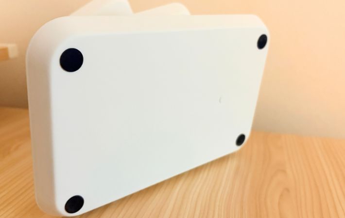 さらに、裏面には丸い滑り止めがついていて、デスクや棚に置いた時にガチャガチャ音がしないのもポイント。